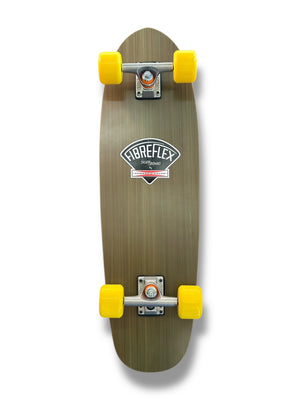 FibreFlex Longboards feature a vertically laminated wood core of Aspen and Mahogany, sandwiched in a heated mold one at a time between kinds of pre-cured epoxy fibreglass. The result is a thin, light, extremely strong and lively skateboard with unbeatable, torque, flex and snap.